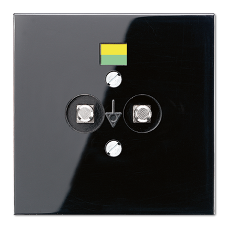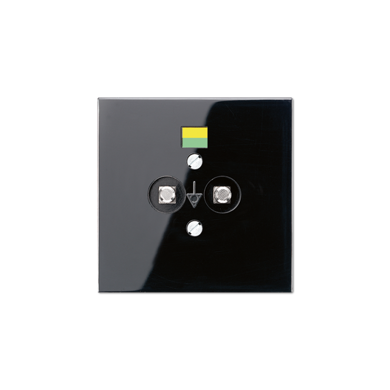 PRISE POUR LIAISON EQUIPOTENTIELLEAVEC SUPPORT DE FIXATION A VISLIVRE AVEC 2 PRISES MALES DIN 42801, POUR CONDUCTEUR JUSQUA 6 MMDIMENSIONS 70 X 70 MMMATERIAU DUROPLASTIQUE RESISTANT AUX ERAFLURES BRILLANTCOULEUR NOIR