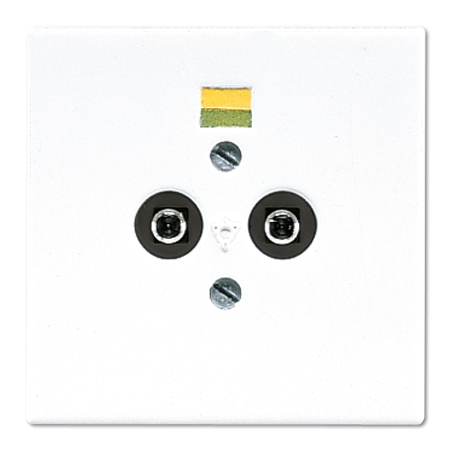 PRISE POUR LIAISON EQUIPOTENTIELLEAVEC SUPPORT DE FIXATION A VISLIVRE AVEC 2 PRISES MALES DIN 42801, POUR CONDUCTEUR JUSQUA 6 MMDIMENSIONS 70 X 70 MMMATERIAU DUROPLASTIQUE RESISTANT AUX ERAFLURES BRILLANTCOULEUR BLANC