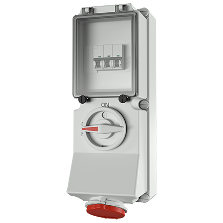 DUO PRISE MURALE 32A5P6H400V ROUGE IP44