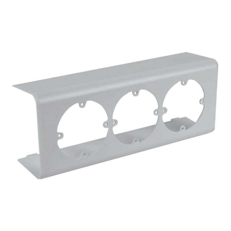 ADAPTATEUR EN MATIERE SYNTHETIQUE BLANCHE, AVEC UNE LONGUEUR DE 253 MM, UNE LARGEUR DE 144 MM ET UNE PROFONDEUR DE 68 MM, POUR COUVRIR L'OUVERTURE POUR TROIS MECANISMES DANS LES GAINES MURALES MURALES EKE 140X60. L'ADAPTATEUR SE CLIQUE SUR LA BASE DE LA G