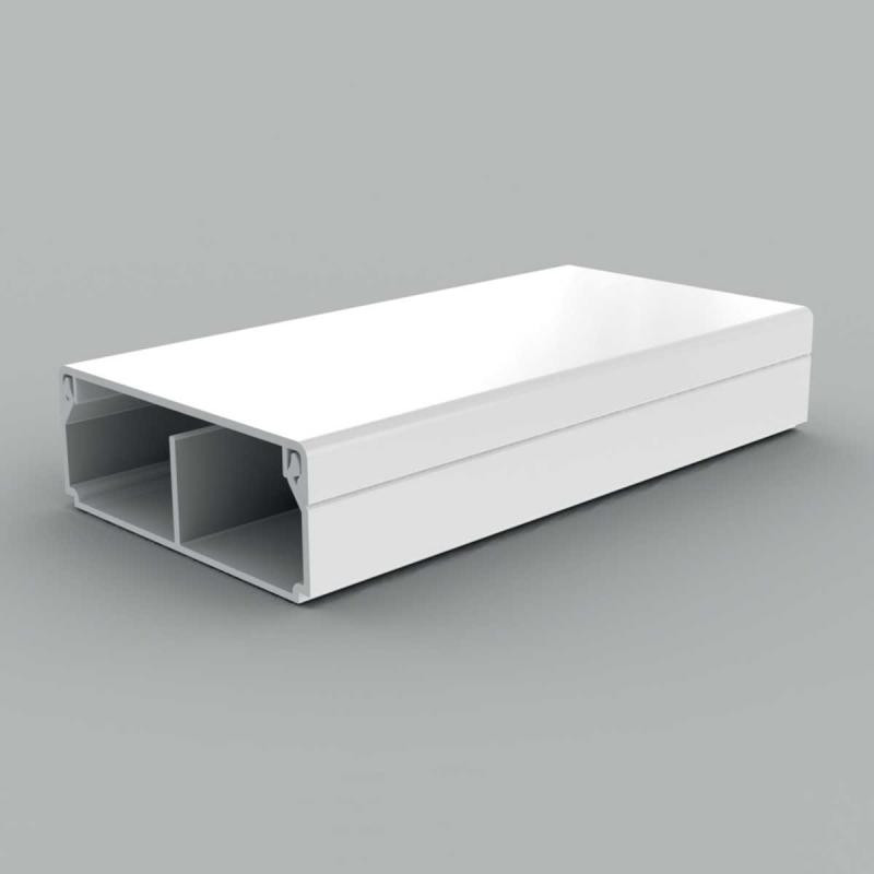 CANAL D'ALIMENTATION, BASE ET COUVERCLE, EN MATIERE SYNTHETIQUE BLANC, HAUTEUR 50 MM, PROFONDEUR 19 MM ET LONGUEUR 2 M. LA SECTION EST DE 770 MM2. LA GAINE A UNE CLOISON DE SEPARATION. LE FOND DE LA GAINE EST POURVU D'ORIFICES DE FIXATION. EMBALLEE EN CAR