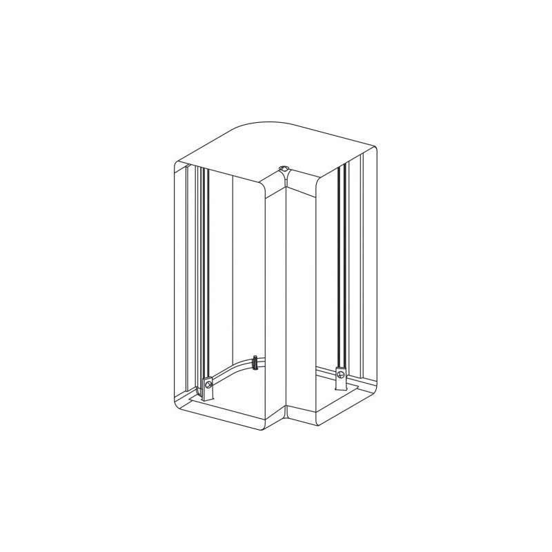PIECE D'ANGLE ASSEMBLE, HAUTEUR 100 MM, EN ALUMINIUM ANODISE. LA PLAQUE DU HAUT ET DU BAS EN MATIERE SYNTHETIQUE GRISE.EST A LA FOIS ANGLE INTERIEUR ET EXTERIEUR POUR LES GAINES MURALES DUCTEL TB10XX-1.POSSIBILITE DE DEVISSER LA PLAQUE DU DESSOUS POUR EVI