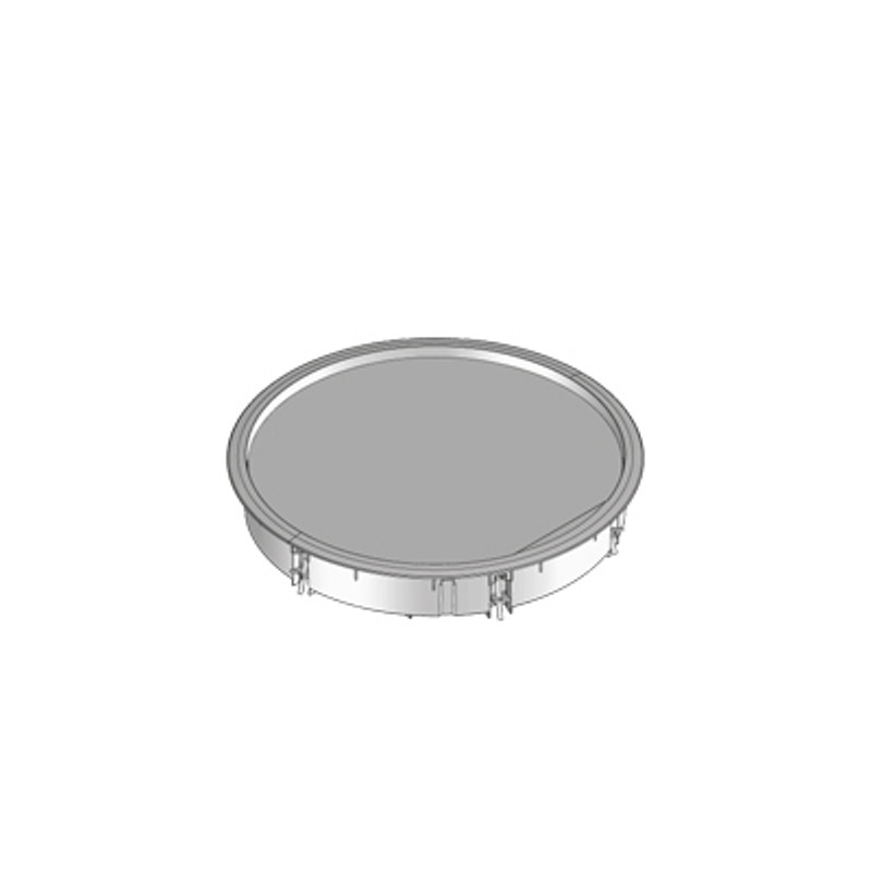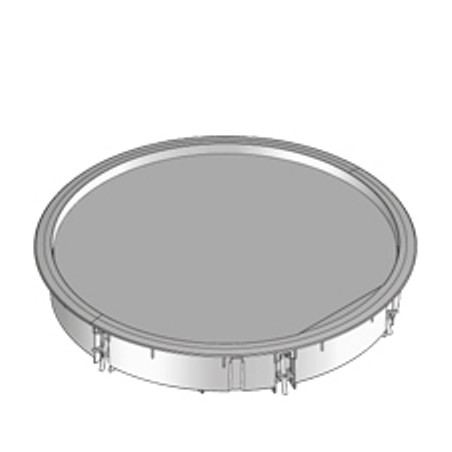 BOÎTE DE TIRAGE RONDE AVEC REBORD EN POLYAMIDE GRIS, DIAMÈTRE 330 MM, PROFONDEUR DE POSE 10 MM POUR LE REVÊTEMENT DE SOL. SET DE GRIFFES DE FIXATION INCLU.