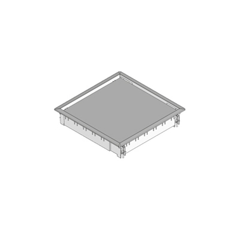 BOÎTE DE TIRAGE CARRÉE AVEC REBORD EN POLYAMIDE NOIR, 280 MM X 280 MM, PROFONDEUR DE POSE 10 MM POUR LE REVÊTEMENT DE SOL. SET DE GRIFFES DE FIXATION INCLU.