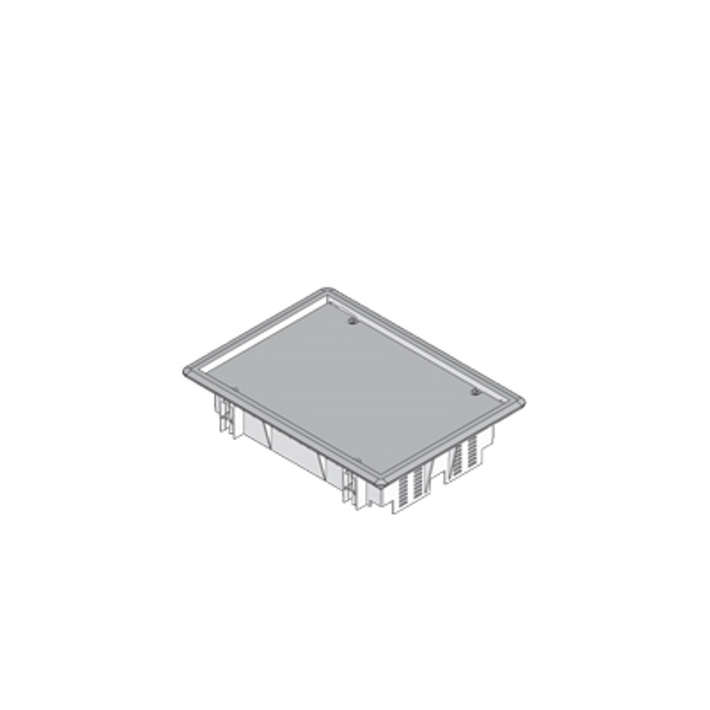 BOÎTE DE TIRAGE RECTANGULAIRE AVEC REBORD EN POLYAMIDE NOIR, 206 MM X 280 MM, PROFONDEUR DE POSE 8 MM POUR LE REVÊTEMENT DE SOL. SET DE GRIFFES DE FIXATION INCLU.