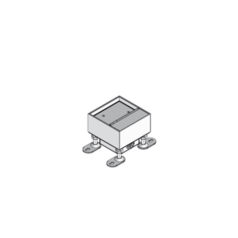 SET COMPOSÉ DE UNE UNITÉ DE NIVELLEMENT CARRÉE AVEC CASSETTE EN ACIER INOXYDABLE 115 X 115 MM, PORTÉE DE RÉGLAGE 100-140 MM, UN COUVERCLE CARRÉ AVEC PROFONDEUR DE POSE 12 MM POUR LE REVÊTEMENT DE SOL ET AVEC UN LEVIER ET UNE SORTIE DE CÂBLES LATÉRALE, UN