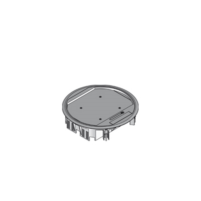 BOÎTE DE RACCORDEMENT RONDE AVEC REBORD EN POLYAMIDE GRIS, DIAMÈTRE 280 MM, PROFONDEUR DE POSE 8 MM POUR LE REVÊTEMENT DE SOL. AVEC LEVIER ET SORTIE DE CÂBLES ET CONÇUE POUR P. EX. MAX. 8 PRISES DE COURANT 45X45. SET DE GRIFFES DE FIXATION INCLU.