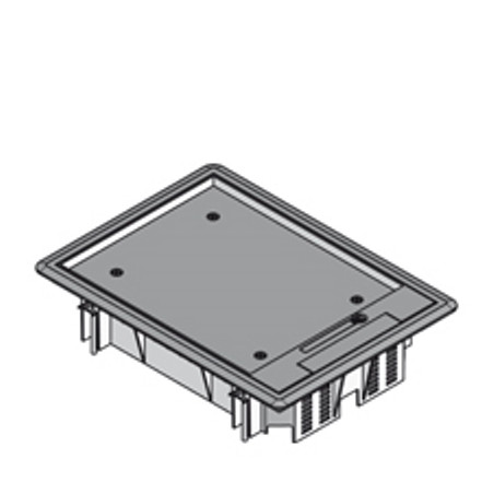 BOÎTE DE RACCORDEMENT RECTANGULAIRE AVEC REBORD EN POLYAMIDE GRIS, 206 MM X 280 MM, PROFONDEUR DE POSE 8 MM POUR LE REVÊTEMENT DE SOL. AVEC LEVIER ET SORTIE DE CÂBLES ET CONÇUE POUR P. EX. MAX. 8 PRISES DE COURANT 45X45. SET DE GRIFFES DE FIXATION INCLU.