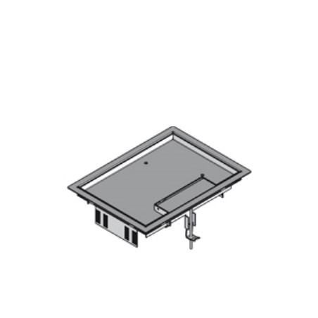 BOÎTE DE RACCORDEMENT RECTANGULAIRE AVEC REBORD EN ACIER INOXYDABLE, 211 MM X 284 MM, PROFONDEUR DE POSE 12 MM POUR LE REVÊTEMENT DE SOL. AVEC LEVIER ET SORTIE DE CÂBLES ET CONÇUE POUR P. EX. MAX. 8 PRISES DE COURANT 45X45. SET DE GRIFFES DE FIXATION INCL