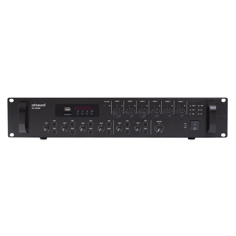 MX-2406M, amplificateur mélangeur 6 zones, 100V, 3U, 240W