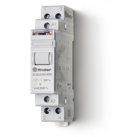 Marque: FINDERRéférence: 202481104000Description: Télérupteur modulaire interrupteur bipolaire 2NO 16A 110V AC, bouton test et indicateur mécanique, matériau des contacts AgSnO2, commutateur 4 séquencesEmballage: 5