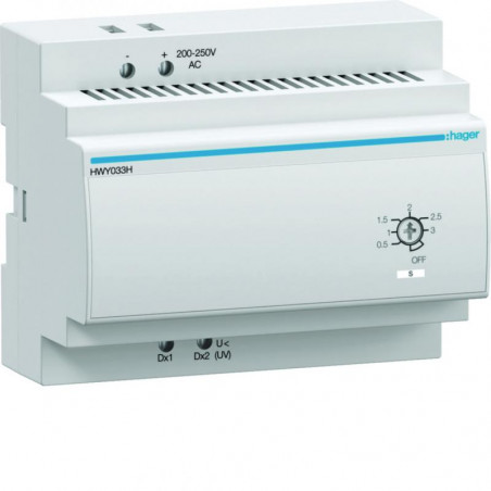Marque: HagerRéférence: HWY033HEAN: 3250613141981Emballage: 1Description: Déclencheur à éminimum de tension retardé 200-250V AC UVTC