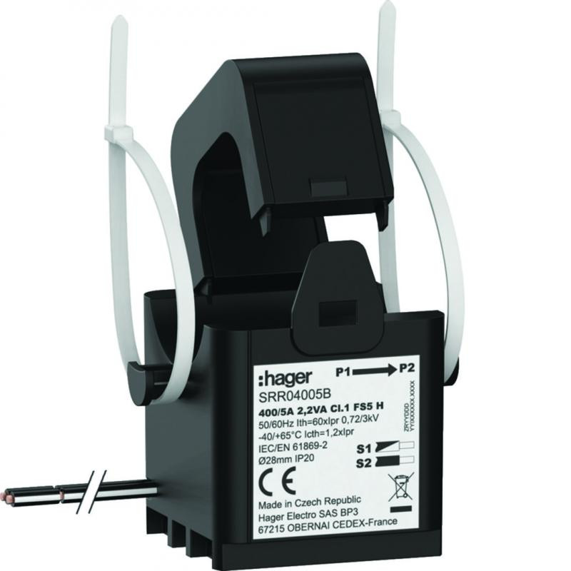 Marque: HagerRéférence: SRR04005BEAN: 3250610018378Emballage: 1Description: Transformateur dintensité ouvert 400/5A