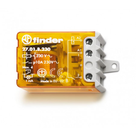 Marque: FINDERRéférence: 270182300000Description: Télérupteur électromécanique de boîte interrupteur unipolaire 1NO 10A 230V AC, alimentation commune circuits bobine et contacts, bornes à cageEmballage: 10