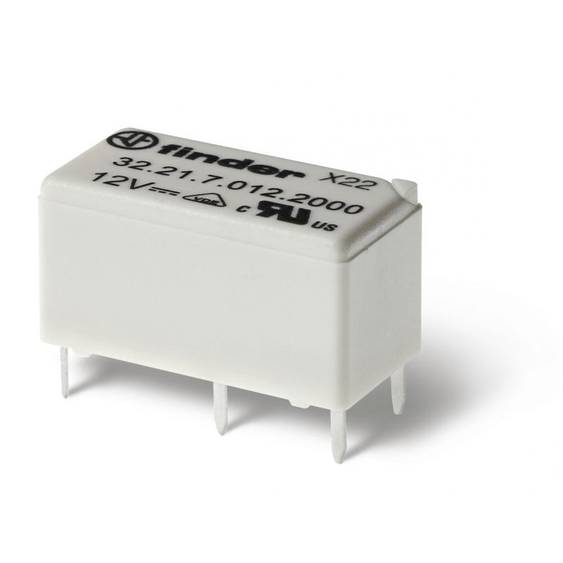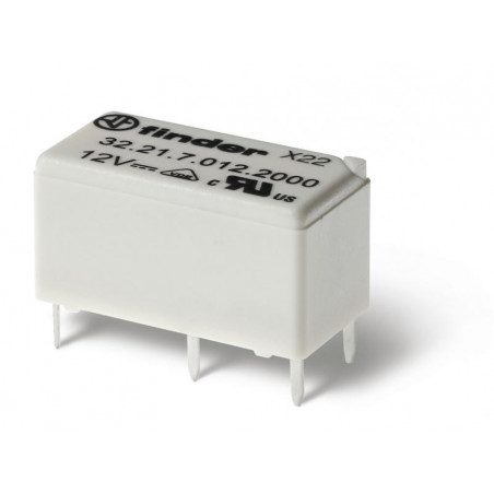 Marque: FINDER Référence: 322170124000 Description: Relais miniature circuit imprimé, 1RT 6A 12V DC version sensible, lavable, bas profil, matériau des contacts AgSnO2 Emballage: 20