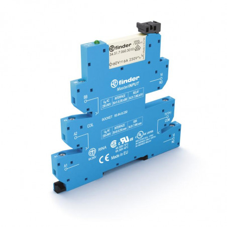 Marque: FINDERRéférence: 394100125060Description: Interface modulaire à relais électromécanique masterINPUT 1RT 6A 12V AC/DC, matériau des contacts AgNi + Au, étrier plastique de maintien, bornes à cage Emballage: 10