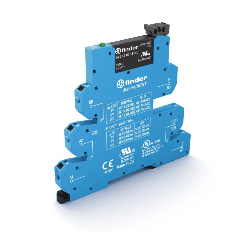 Description: Interface modulaire à relais statique masterINPUT 1NO 6A entrée : 2110 à 125V AC/DC sortie 24V DC, étrier plastique de maintien, largeur 6,2mm, bornes automatiques