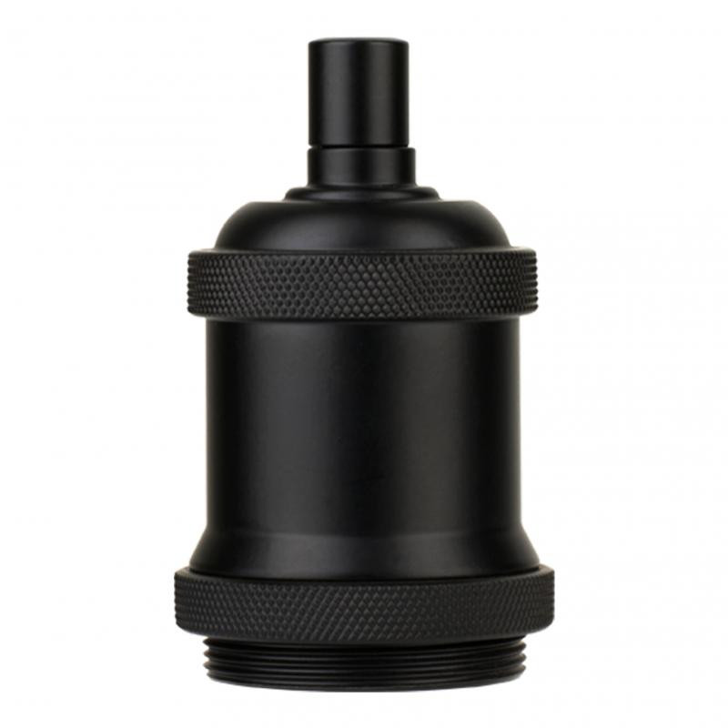 BAI Douille Retro aluminium E27 Gaine noir mat et serre-cable M10 filetage creux Kit complet CLII Filetage 413mm Max 60W