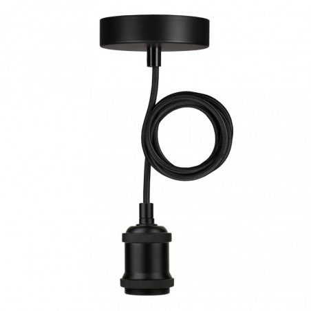 BAI Lampe suspension Oslo E27 Noir mat avec 15M Cable Textile Noir 2x075mm2 et Rosace Noir Classe 2 Max 60W Max 25KG