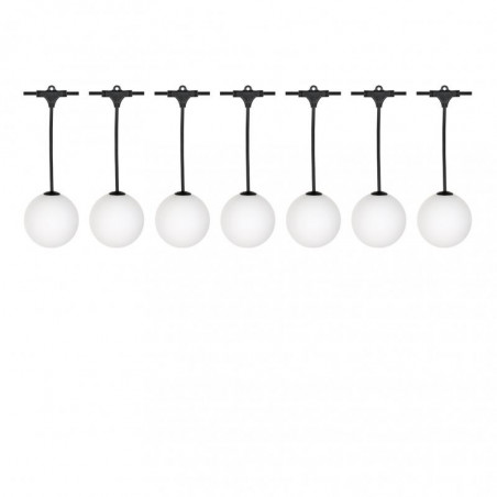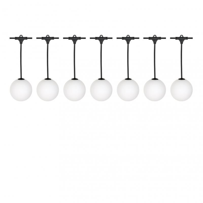 BAI LED Party Balls Guirlande 7.3m 7 globes suspendus 1W 100lm G100 2500K 12W 230V / 24VDC Câble noir 0.5mm - connecteur final à vis 6mm IP67 - rallongeable