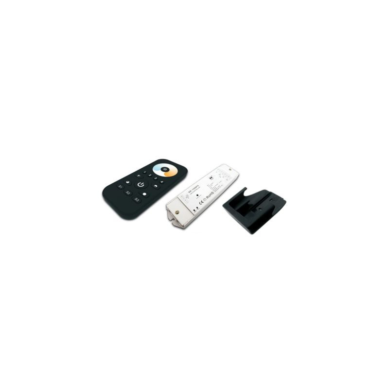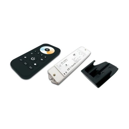 Commande sans fil RF pour bandeaux led bi-color. Kit complete avec emetteur SR-2819S-CCT et controleur SR-1009PD. Max 4 zones, par zone un controleur SR-1009PD est neccessaire. Télécommande alimenté avec 3 piles AAA. non fourni