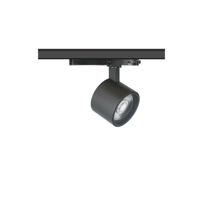 Tracklight dans un boîtier extra-étroit pour rail triphasé universel Eutrack. Boîtier noir RAL9004 équipé dune puce LED Citizen avec rendu des couleurs élevé CRI90. Adaptateur de rail Powergear avec driver Osram Flickr free intégré, non dimmable. Durée de vie 50.000 heures L80B20, garantie 5 ans.