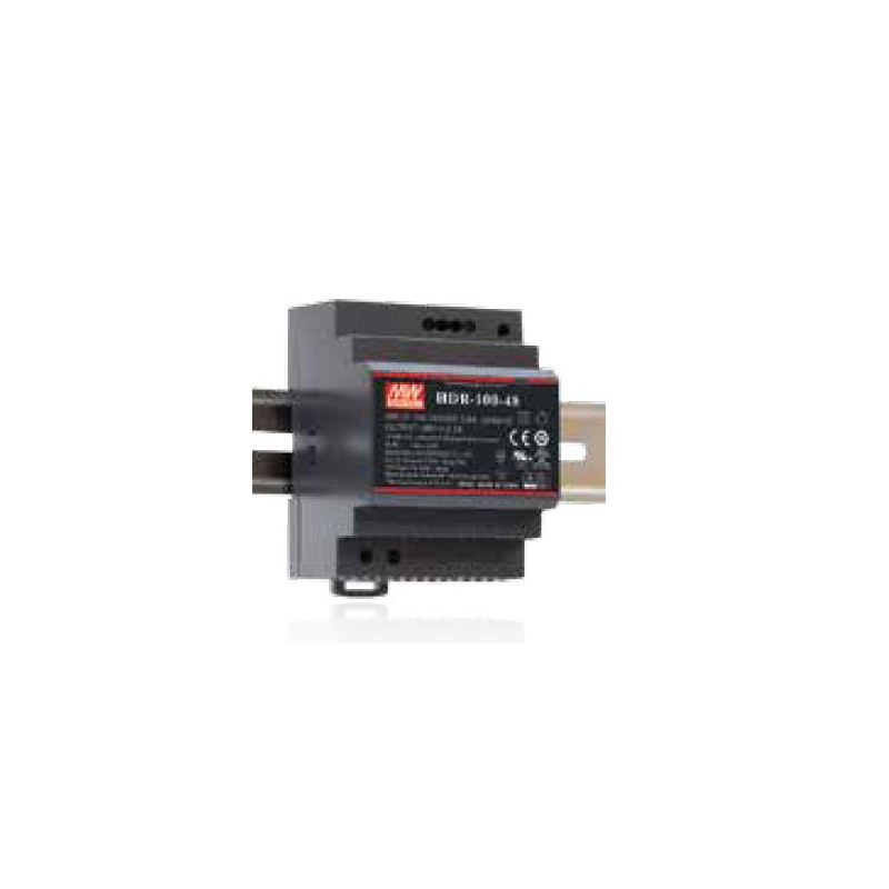 Alimentation led class II primaire 85-277Vac, secondaire 100W 24VDC. Protégé contre courts-circuits, surcharges et envergure. Montage DIN-rail 0,5 modules.