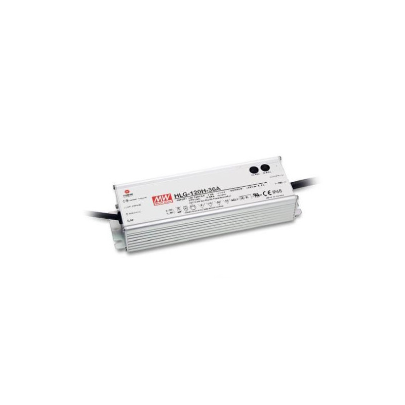 Alimentation LED segment supérieur, boîtier métallique IP65 Classe 2, primaire 90-305VAC. secondaire 24VDC 120W. Protégé contre courts-circuits, surcharges et surtensions.