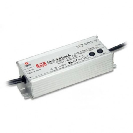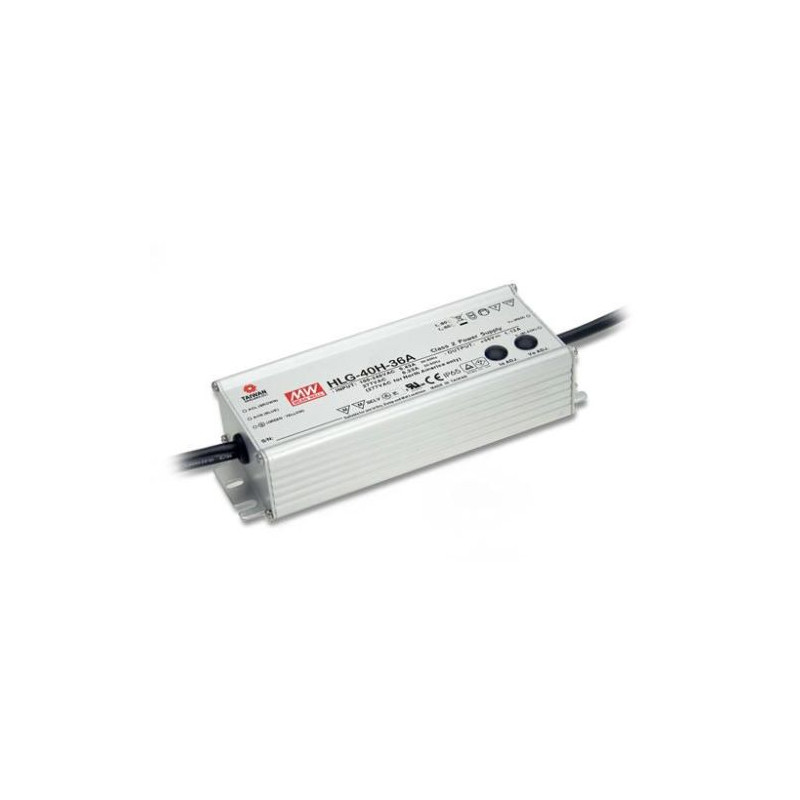 Alimentation LED segment supérieur, boîtier métallique IP65 Classe 2, primaire 90-305VAC. secondaire 24VDC 40W. Protégé contre courts-circuits, surcharges et surtensions.