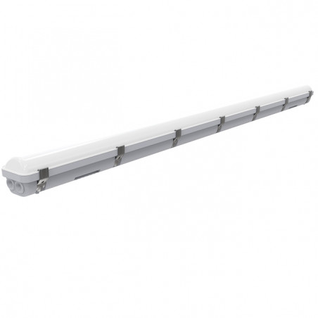 Luminaire LED étanche HWDP Performance avec power switch 36-45-52-60W et CCT switch 3000-4000-6000K, longueur de 150cm, IP66 en polycarbonate avec couvercle opale IK10 et clips en acier inoxydable. Équipé dun connecteur de connexion sans outil à 5 ples des deux ctés et dun câblage traversant de 5x2,5mm. Puissance lumineuse jusquà 173lm/W. Équipé dn driver ENEC SELV, sans scintillement. Idéal pour montage en ligne et des circuits dalimentation de secours. Fourni avec supports de plafond en acier inoxydable, un presse-étoupe M20 pour le montage en ligne et 3 passe-câbles pré-installé. Le boîtier dispose de 5 entrées pour lentrée de câbles à travers le plafond. Le driver, le câblage traversant et les connecteurs sont montés à la base de lunité. La plaque LED et le couvercle PC forment une seule unité, qui protège les LED contre le contact, et une protection contre les chutes avec un câble en acier est fournie. Version avec unité durgence auto-test 3h, 5 W dautonomie et équipée de batteries LiFePO respectueuses de lenvironnement.