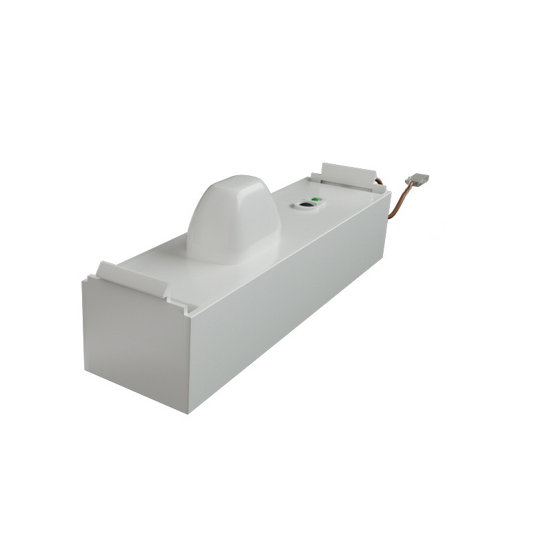 Détecteur à micro-ondes pour luminaire HYDRON avec fonction jour/nuit, fonction de gradation à trois niveaux, contrle par dip-switches et télécommande. Conception modulaire avec possibilité dauto-assemblage du capteur par linstallateur.