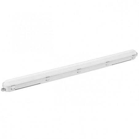 Luminaire LED étanche Hydron Essential avec power switch 20-26-31-36W et CCT switch 3000-4000K, longueur de 120cm, IP66 en polycarbonate avec couvercle opale IK08 et clips en acier inoxydable. Puissance lumineuse jusquà 135lm/W. Équipé dn driver ENEC SELV, sans scintillement. Idéal pour montage en ligne et des circuits dalimentation de secours. Une protection contre les chutes avec un câble en acier est fournie et un presse-étoupe M20 est pré-installé.