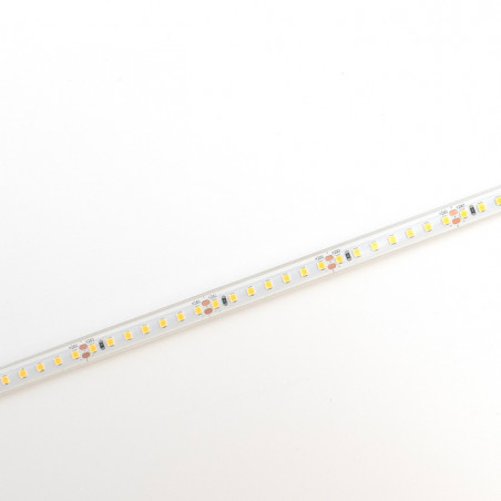 Ruban LED de la série ADVANCED. Le ruban est composée de 140 LED SMD par mètre et a une classe énergétique E. Convient aux environnements extérieurs et humides IP67. Rouleau de 5m. Puissance de 8,4 W/m. Le ruban de LED est contrlée par une tension de 24Vdc. Le ruban fournit 1000 Lm/m et a une température de couleur de 4000K avec un IRC de 90. Le ruban est dimmable via PWM