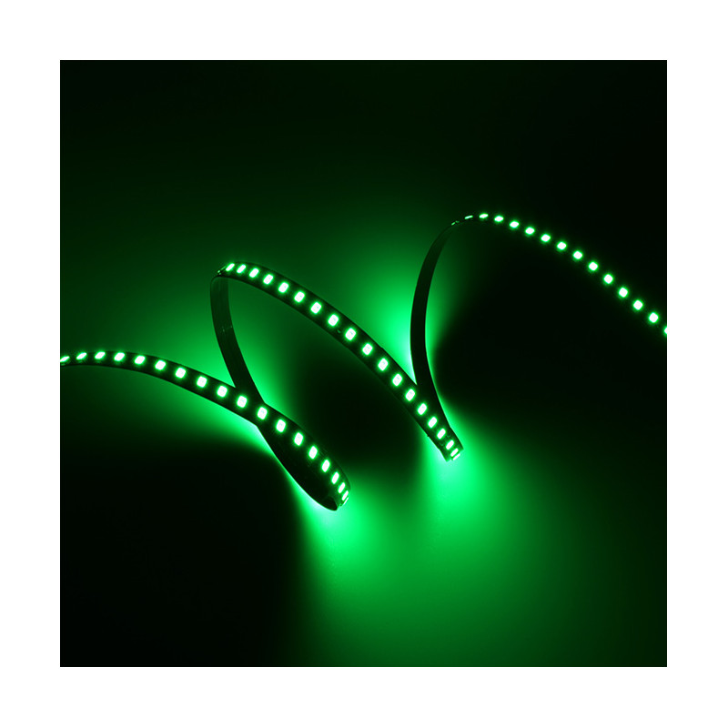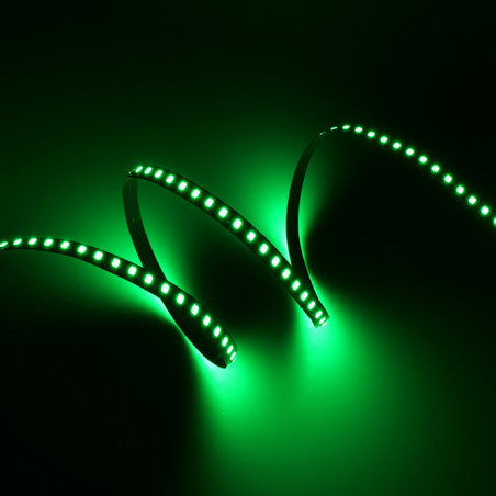 Ruban LED monocolore vert de la série ADVANCED. Le ruban est composée de 140 LED SMD vert par mètre. Le ruban a une puissance de 7,2W/m et une classe énergétique G. Convient aux environnements intèrieurs et secs IP20. Rouleau de 5m. Le ruban de LED est contrlée par une tension de 24Vdc. Le ruban fournit 576 Lm/m et a une température de couleur de GREENK avec un IRC de /. Le ruban est dimmable via PWM.