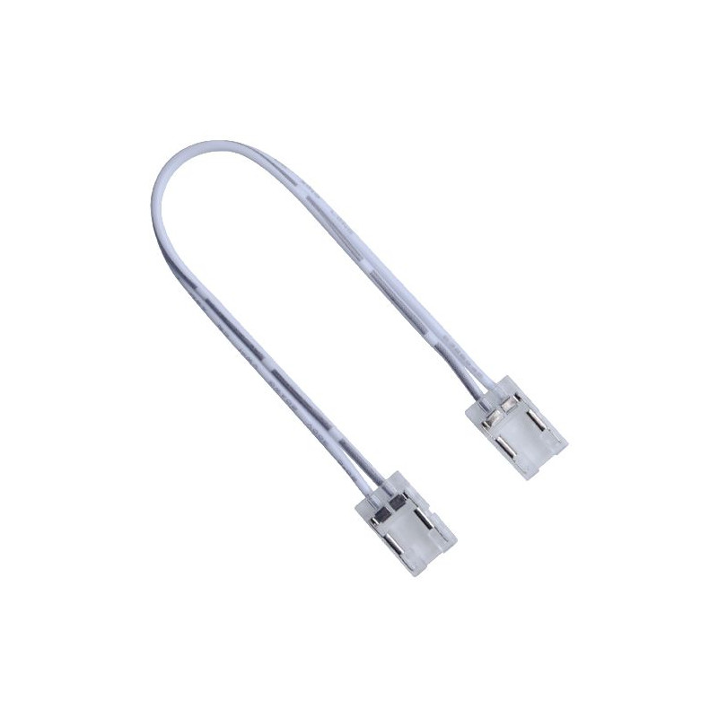Connecteur sans outil ruban à ruban avec câble 15cm pour ruban led IP20 monochrome de 8mm largeur. Max. 24V 3,5A. Résistant à la chaleur jusquà 105 C.