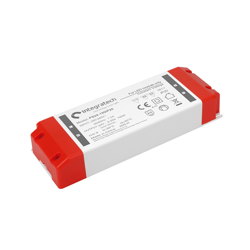 Alimentation ruban LED Constant Voltage, classe 2 en boîtier plastique. Primaire 220-240VAC, secondaire 24VDC 150W. Equipé de connexions câbles vissables. IP20, dimmable par contrle externe. Protégé contre courts-circuits, surcharges et surtension.
