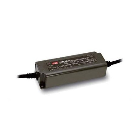 Alimentation basse puissance de classe II dans un boîtier en plastique IP67 90264VCA/24VDC. 60W Avec fonction de gradation intégrée 1-10V/PWM. Protection contre les courts-circuits, les surcharges et les surtensions.