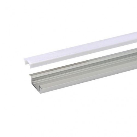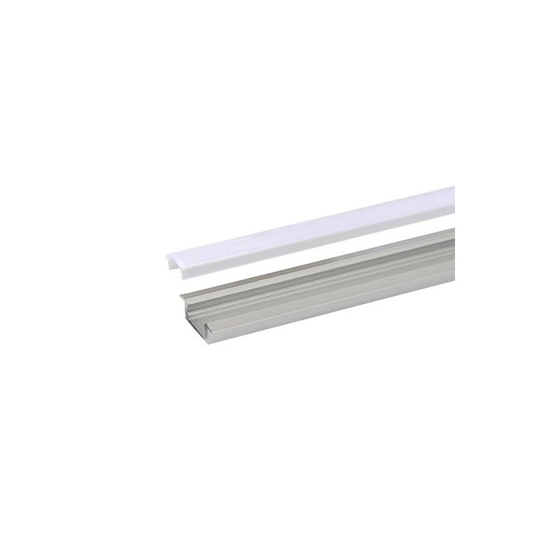 Profile led encastré RSL7 en aluminium anodisé AL6063. Kit complet avec profile led de 2m, couvercle opale en PC, 2 embouts sans entrée de câble et 2 embouts avec entrée de câble dans un tube en carton robuste et résistant.