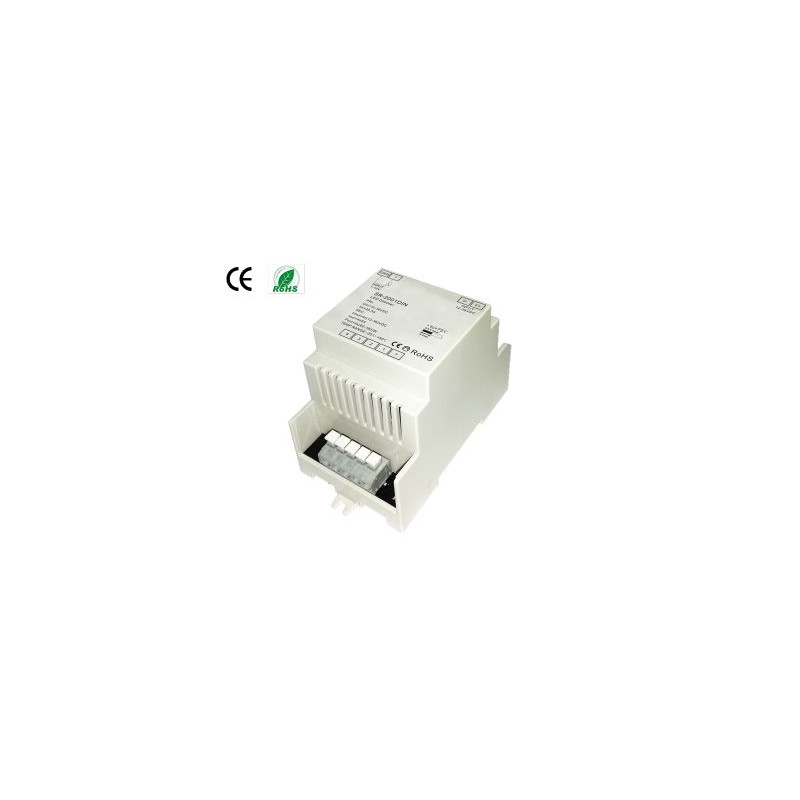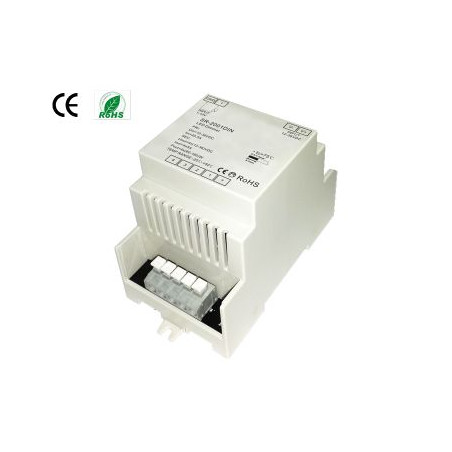 Controleur montage DIN-rail avec une entrée 1-10V pour bandeaux led mono-color. 4 sorties synchrone de 5A. non contrlables séparément