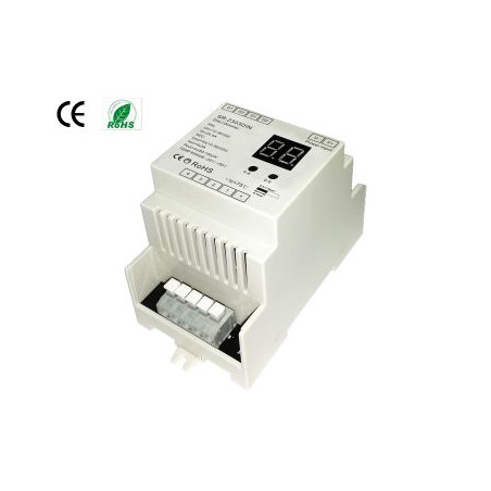 Controleur DALI montage din-rail pour bandeaux led mono-color, bi-color, rgb ou rgbw. Max 5A par canal, max. 480W sur 24VDC. Avec display pour affichage adresse DMX. Adresse DALI ajustable manuellement ou automatiquement.Ladresse DALI peut être assignée manuellement entre 00-63-FF. Par défaut, aucune adresse DALI nest assignée au gradateur et lécran affiche FF. Le fait de régler ladresse DALI sur FF réinitialise le gradateur aux paramètres dusine par défaut. Laffichage numérique indique AU lorsque le maître DALI attribue ladresse.