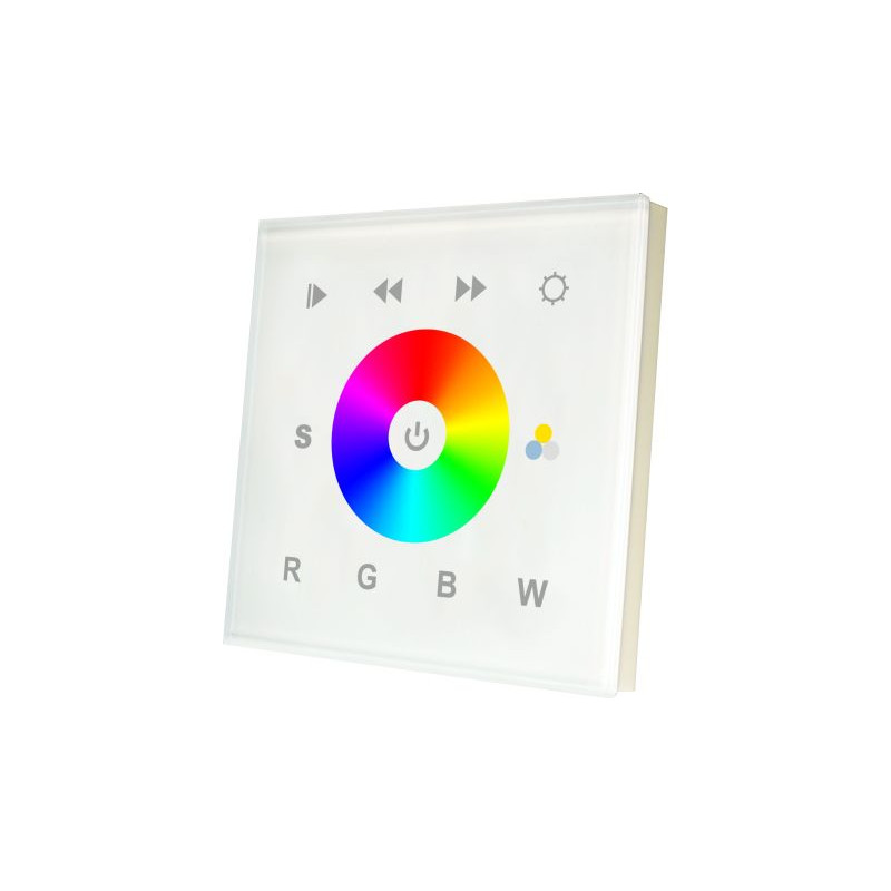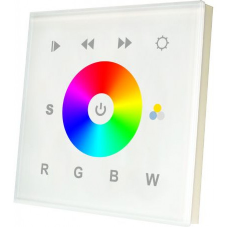 Panneau mural 12/24VDC blanc avec sortie DMX pour bandeau led rgb ou rgbw. Utilisez en combinaison avec controleur DMX SR-2102. Adapté pour boîte de montage avec vis.