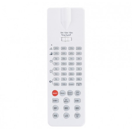 La télécommande Integratech TM-REM1 permet de régler le capteur de microwave de la gamme HWD Advanced. Elle permet de régler la luminosité, la sensibilité et la portée du capteur, le mode lumière du jour et le temps de veille.