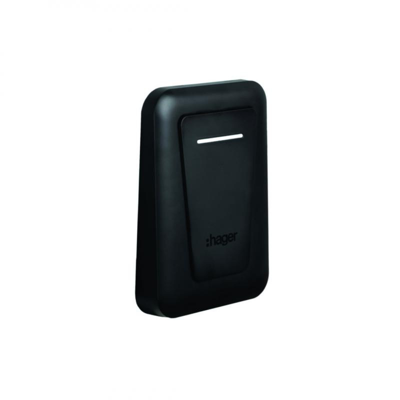 Marque: HagerRéférence: XVS121EAN: 3250610103548Emballage: 1Description: Cadre de finition noir RAL9011 pour version câble witty one/plus/pro