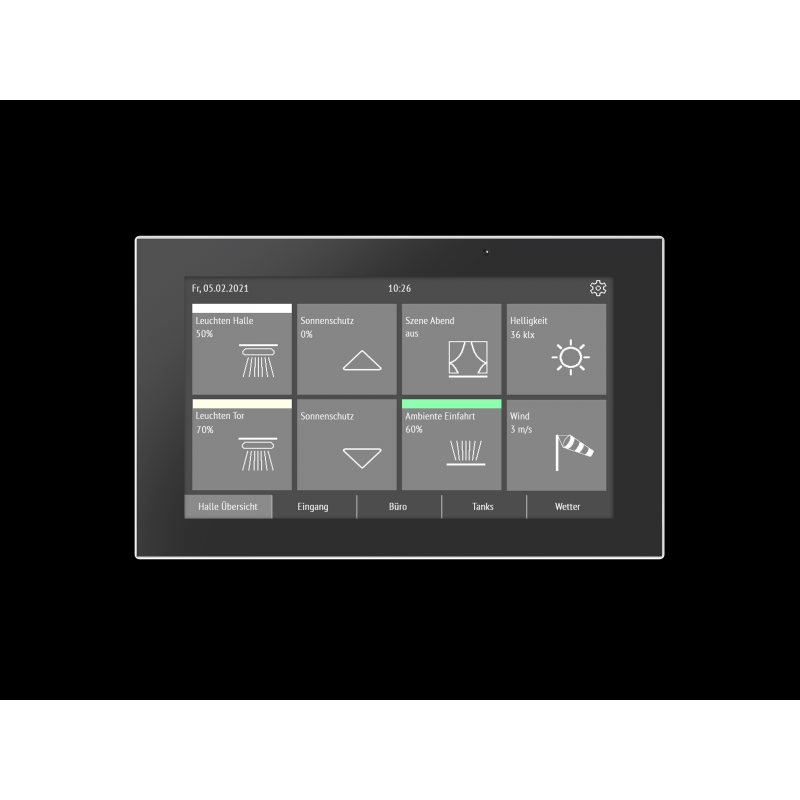 Description: Écran tactile couleur 7 pouces5 pages avec 8 interfaces différentesInterrupteur, bouton poussoir, affichage, entrée, interface universelleÉconomiseur d'écranArrêt automatiqueCapteur de luminosité intégréTonalité8 portes logiques ET et 8 OU8 modules multifonctions (ordinateurs)8 entrées d'alarme, sortie d'alarme sous forme de texte, son et/ou éclairage d'affichage clignotant