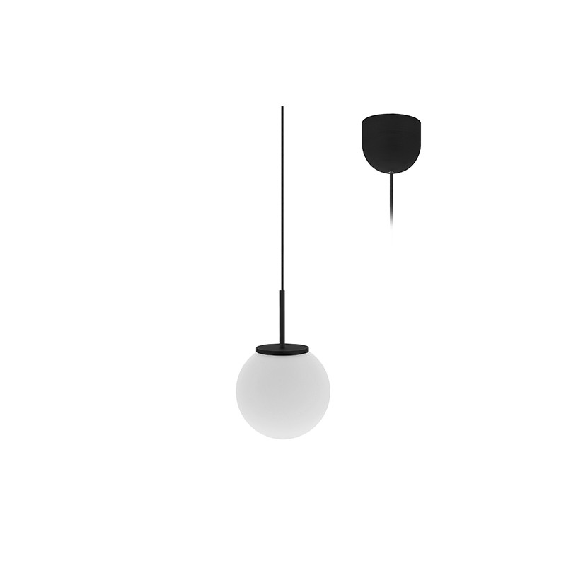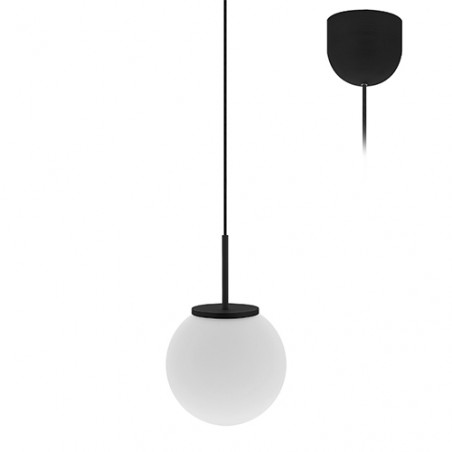 Suspension décorative.Diffuseur en verre opalin.Livrée avec câble dalimentation textile réglable 1.50m max.Câble noir.Convertisseur dimmable par coupure de phase intégré dans la base.