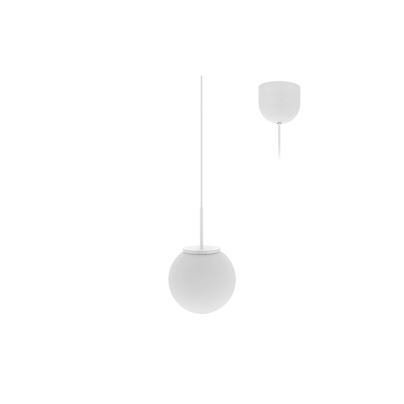 Suspension décorative.Diffuseur en verre opalin.Livrée avec câble dalimentation textile réglable 1.50m max.Câble blanc.Convertisseur dimmable par coupure de phase intégré dans la base.