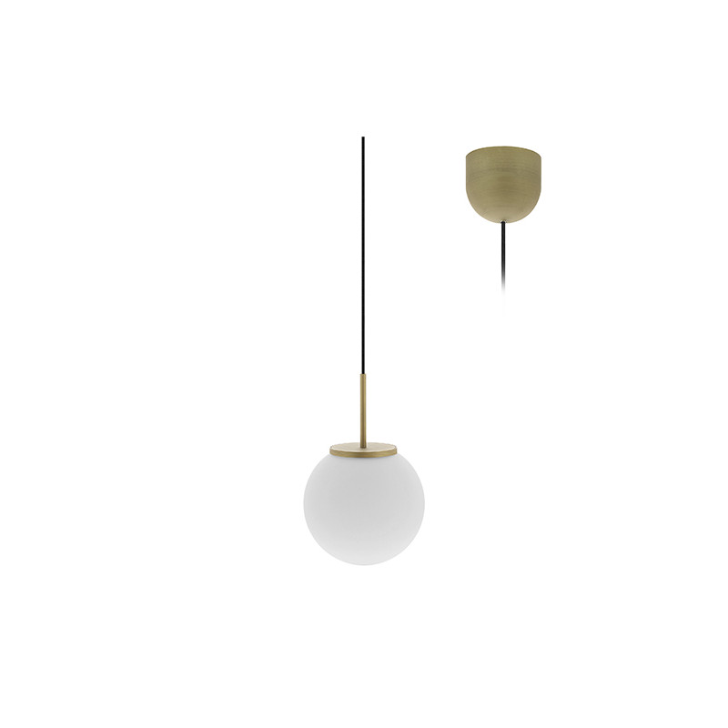 Suspension décorative.Diffuseur en verre opalin.Livrée avec câble dalimentation textile réglable 1.50m max.Câble noir.Convertisseur dimmable par coupure de phase intégré dans la base.