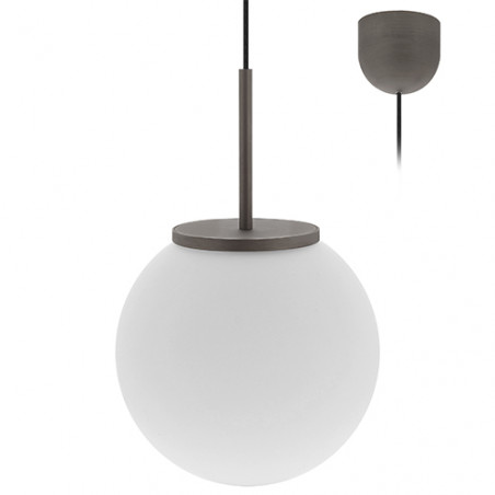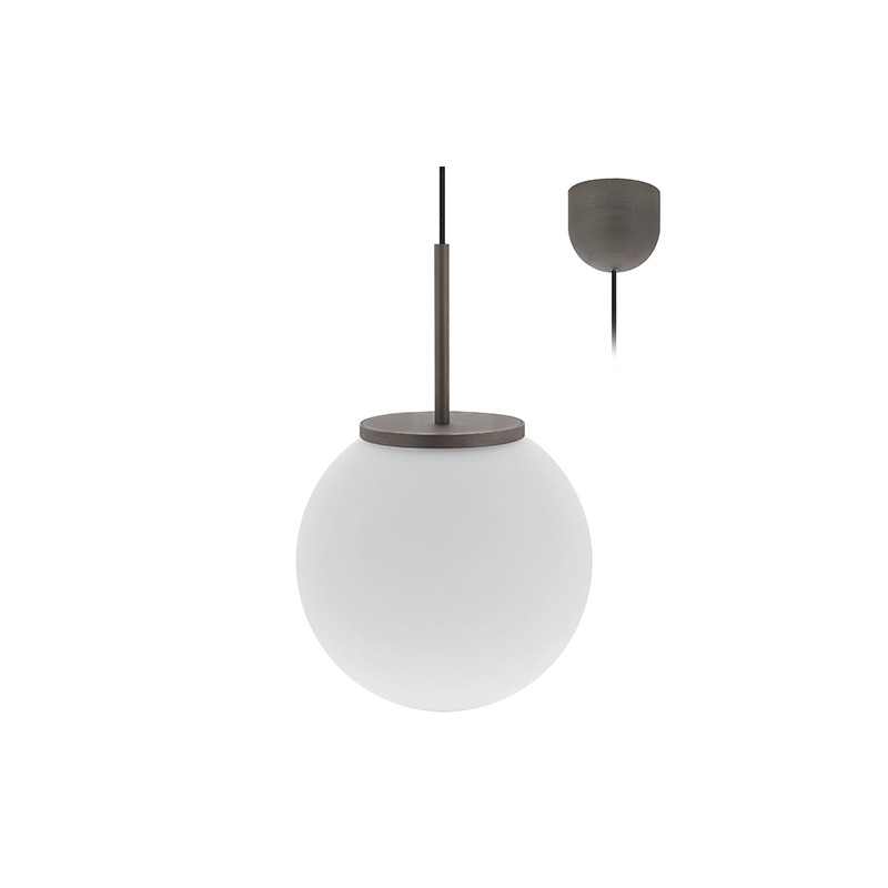 Suspension décorative.Diffuseur en verre opalin.Livrée avec câble dalimentation textile réglable 1.50m max.Câble noir.Convertisseur dimmable par coupure de phase intégré dans la base.