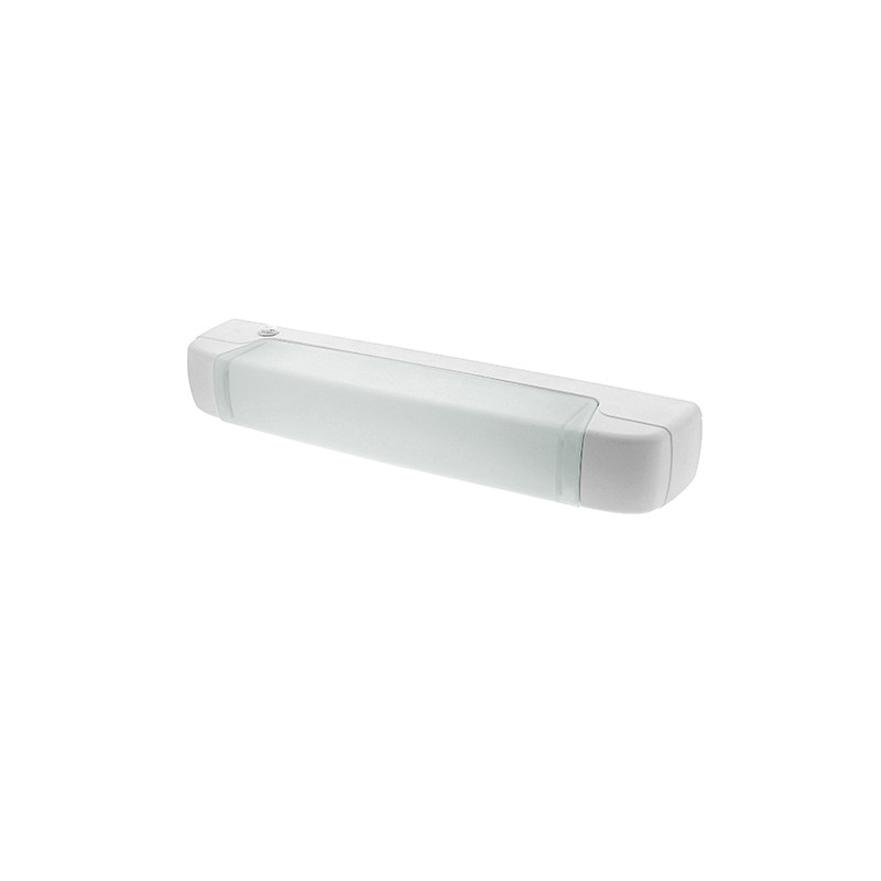 Réglette de salle de bain, cuisine ou local technique.Montage en applique.Diffuseur en polycarbonate.Source lumineuse S19 non-incluse.Avec interrupteur et prise2PT 16A.