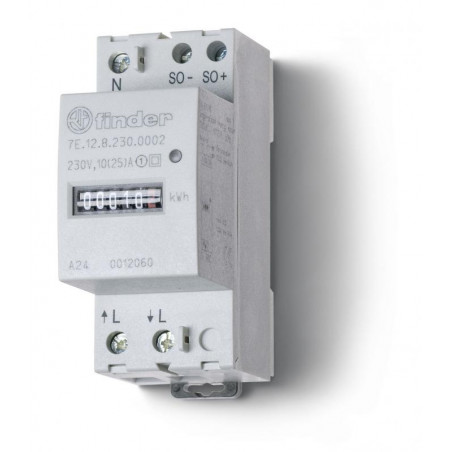 Marque: FINDERRéférence: 7E1282300002Description: Compteur d'énergie momophasé, modulaire 10A nominal 25A maximum, 230V AC, sortie émettrice d'impulsions SO +/-, affichage horizontal, classe 1/BEmballage: 5